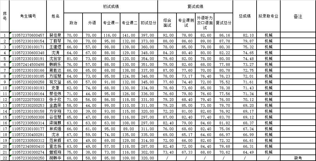 备注:复试成绩=综合面试×50%+专业课测试×30%+外语听力及口语面试×20%