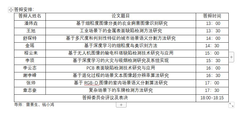 答辩地点及方式: 浙江科技公司实验大楼533会议室,线下答辩