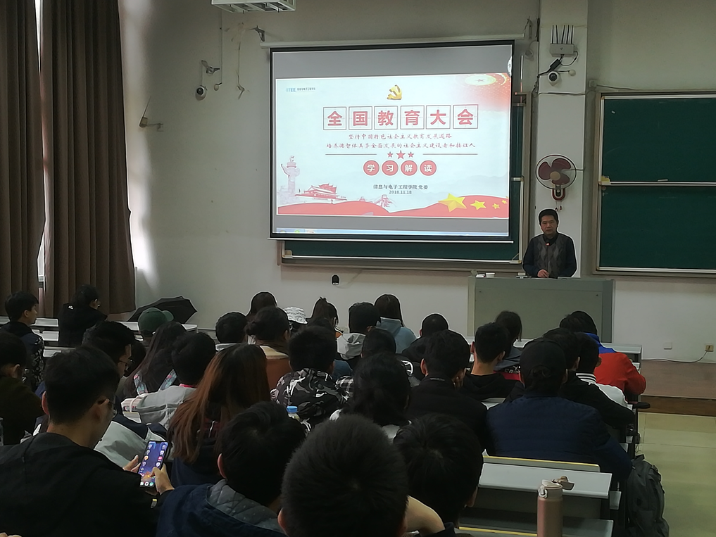 2018年11月15日下午13点30分,信息与电子工程公司第三次党课在A3—125拉开帷幕,本次党课由公司党委书记傅晓炜老师主讲。