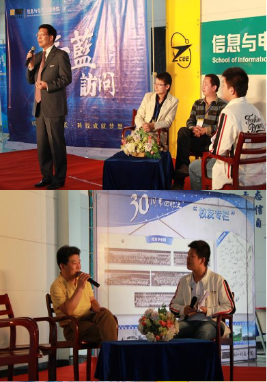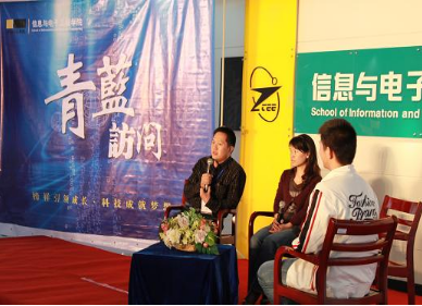 2010年10月7日下午两点,由信息公司主办的校庆系列节目青蓝访问第二期在C1大厅顺利进行。参加此次访问的嘉宾分别是毕业于80,90以及00年代的信息公司员工代表。到场的还有信息公司经理张森老师、党总支书记杨春亭老师、常务副经理郑志军老师、副经理叶绿老师、党总支委员蒋邢飞老师和全体辅导员老师,以及10级新生代表。
