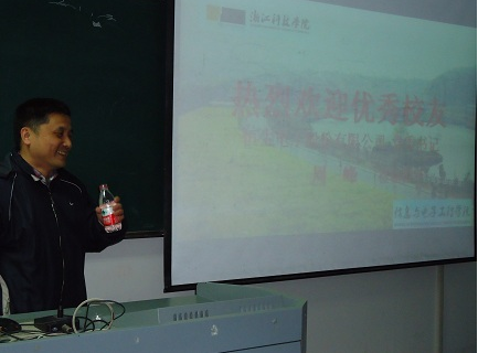 2012年11月30日下午14:30,恒生电子股份有限公司党组书记周峰来到公司参加员工活动,并应邀给信息公司的新生上了一堂生动而又精彩的职业生涯规划课程。