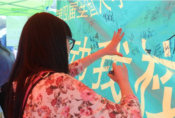 绿色不仅是一种环保理念,更是一种生活方式,而绿植领养活动则是把这种生活方式带进了校园。早上7:30分,精美的彩色花盆和枸杞种子就已经准备好,等待着它们的主人。经过圆形广场的同学和老师都被这一抹独特的绿色吸引驻足参与到活动中。同学们通过发微博或短信参与绿植领养活动,即可领走属于他的枸杞种子和花盆,新浪公仔和小风扇等精美礼物也由抽奖方式送出。在领走种子和花盆的同时,同学们也在签名墙上留下了自己的名字。本次活动持续到下午2:00左右,二百多袋种子都已经发放完成。