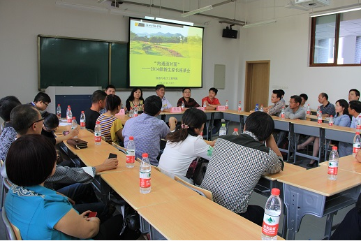 座谈会分为四个环节。党总支书记杨春亭首先介绍了公司历史和近年来的发展情况,并就安吉新校区的落成和信息公司的概况做了说明。副经理叶绿则详细地向各位新生家长讲解了公司的教学工作。在自由提问环节中,家长们就其较为关心的事项向院领导提问,例如新校区里员工的生活条件和学习环境,日后就业前途以及关于出国、实习等一系列问题,院领导一一耐心做出了解答。在座谈会最后,经理岑岗对本次座谈会进行总结时指出,导师制的施行,将会使公司的教学水平有一个新的突破,他由衷地表达了公司对2014级新生到来的欢迎,希望14级的新生们能够尽快地适应大学的学习和生活。