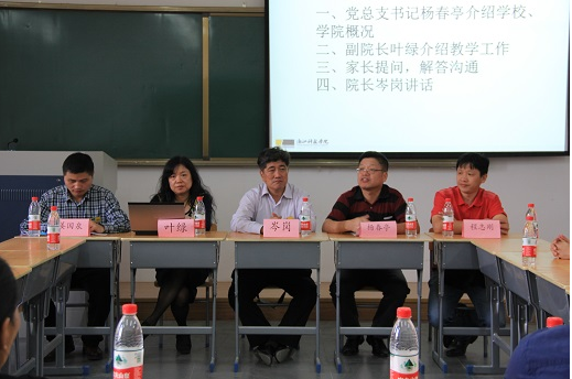 10月8日下午,为了让2014级新生家长对公司、新校区以及公司有全面的认识和了解,信息公司开展了一次院领导和家长们面对面的座谈会。信息公司经理岑岗、党总支书记杨春亭、副经理叶绿、副经理程志刚、党总支副书记姜国泉等领导出席了本次座谈会。