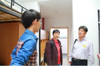 岑岗、杨春亭等院领导走进一间间新生寝室,与新生和家长话家常,仔细询问了新生家乡情况及到校感受,并介绍了公司专业特色和文化特色,勉励新同学们,以安吉校区为起点,开启健康、阳光、好学的大学模式,为自己辉煌的人生不断努力毅行。院领导对来自外省的新同学进行了特别的叮咛,希望他们早点适应浙江的饮食、气候和地域文化,认真做好老员工涯规划,把握时光,奋发有为。