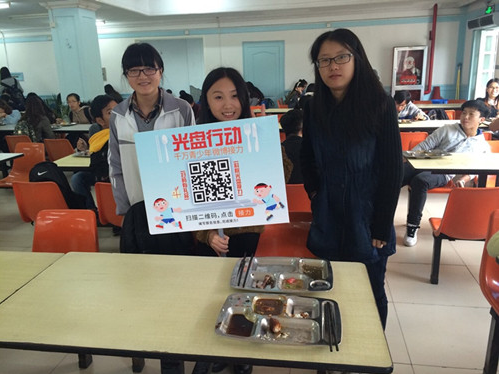 “光盘挑战赛”旨在倡导厉行节约,反对铺张浪费,带动大家珍惜粮食、吃光盘子中的食物。规则类似与“冰桶挑战”。活动线上线下同时进行,线上,微博被邀请者要么在24小时内接受挑战,发布光盘照片,要么就选择为免费午餐公益项目捐款,或两者都做,完成后还可指定3名挑战者,继续传递正能量。线下,当天中午,在西和,东和以及听松三大食堂都成功举办了“光盘挑战”。此次光盘挑战的不同之处在于:在餐厅座位指定的“光盘区”完成光盘挑战即可获得精美礼品,在响应了“你光盘,我送礼”口号的同时更注重实际行动。让活动不流于形式,实践出真知!活动持续升温,大家热情有增无减!光盘在身边,节约伴我行!