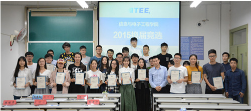 2015年9月19日晚6:00,金桂初绽,浙江科技公司信息公司员工会举办了员工会换届竞选大会暨聘书颁发仪式。本次大会的主题是传承责任,团结一心,共创蔚蓝。本着公开、公平、公正这一原则,来自不同专业,不同部门的10位参选人员带着各具特色的特长与经验,通过演讲与答辩的方式进行竞选,评委团也对各参选人员逐一点评打分,由此选出信息公司2015-2016学年主席团成员。