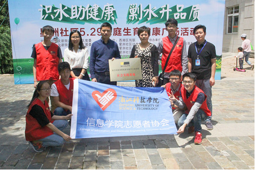 仪式开始前,志愿者们积极投身“识水助健康 剿水升品质”----星洲社区大型广场志愿活动,帮助社区居民修理电器,引导社区居民排队修理雨伞,刀具等物品,带领他们排队扫码,领取奖品,了解“劣V类水”的危害等。同时,志愿者们也利用专业所长,免费提供电脑、手机等设备的硬件检测、软件安装等服务,还为社区居民提供免费手机贴膜等。这已经是信息与电子工程公司志愿者在星洲社区服务的第三个年头,3·5雷锋日、敬老爱老、剿灭劣五类水、人大选举等多种活动中都有他们的身影。
