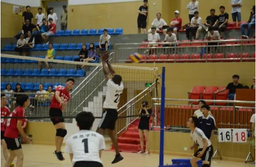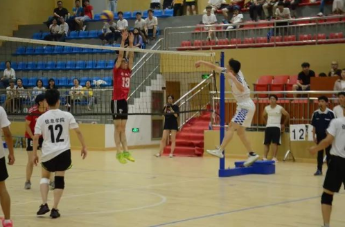 眼看经管公司率先拿下赛点,信息公司不折不挠、稳扎稳打,最后以精彩的拦网、漂亮的扣杀连续得三分,实现比分的逆转!