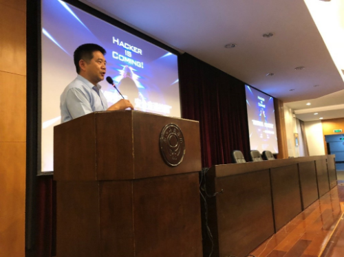 活动开始,信息公司的党委书记傅晓炜老师为此次讲座致开场词,傅老师热情地欢迎大家的到场,他表示,“无形”的网络中存在诸多威胁,让人感觉“不寒而栗”,但庆幸的是,我们拥有大量“有形”的力量在维护和保卫着网络的安全,他号召同学们树立起安全的意识,以专业的技术、饱满的自信和决心,学好网络安全的知识,成为无形世界的守卫者。