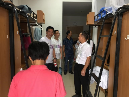 下午的见面会结束后,公司领导、辅导员、各位班主任和助班走访了各个寝室,了解了同学们开学第一天的适应情况,叮嘱大家注意寝室安全,及时适应新环境。
