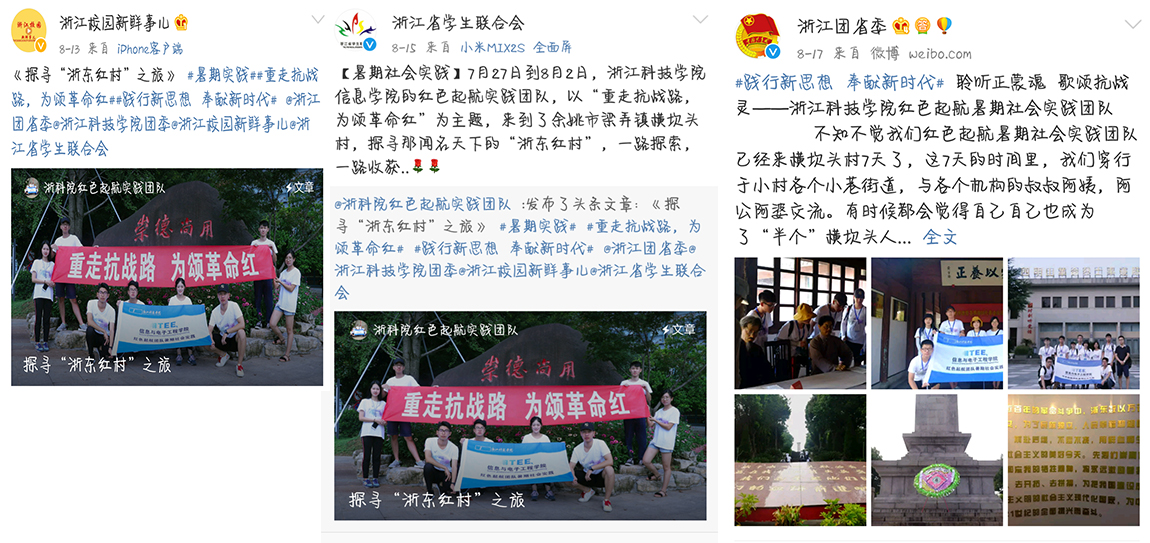 在紧张的七天行程里,队员们追寻抗战足迹,走访红色基地,学习红色革命精神;明悟乡村振兴,探索革命老区振兴之路;拜访老党员和老干部,聆听红色故事,传承革命事迹。红色起航团队的活动事迹也得到浙江团省委、省学联、中国老员工网、老员工校内网、当代老员工网等微博、公众号、网站广泛报道。