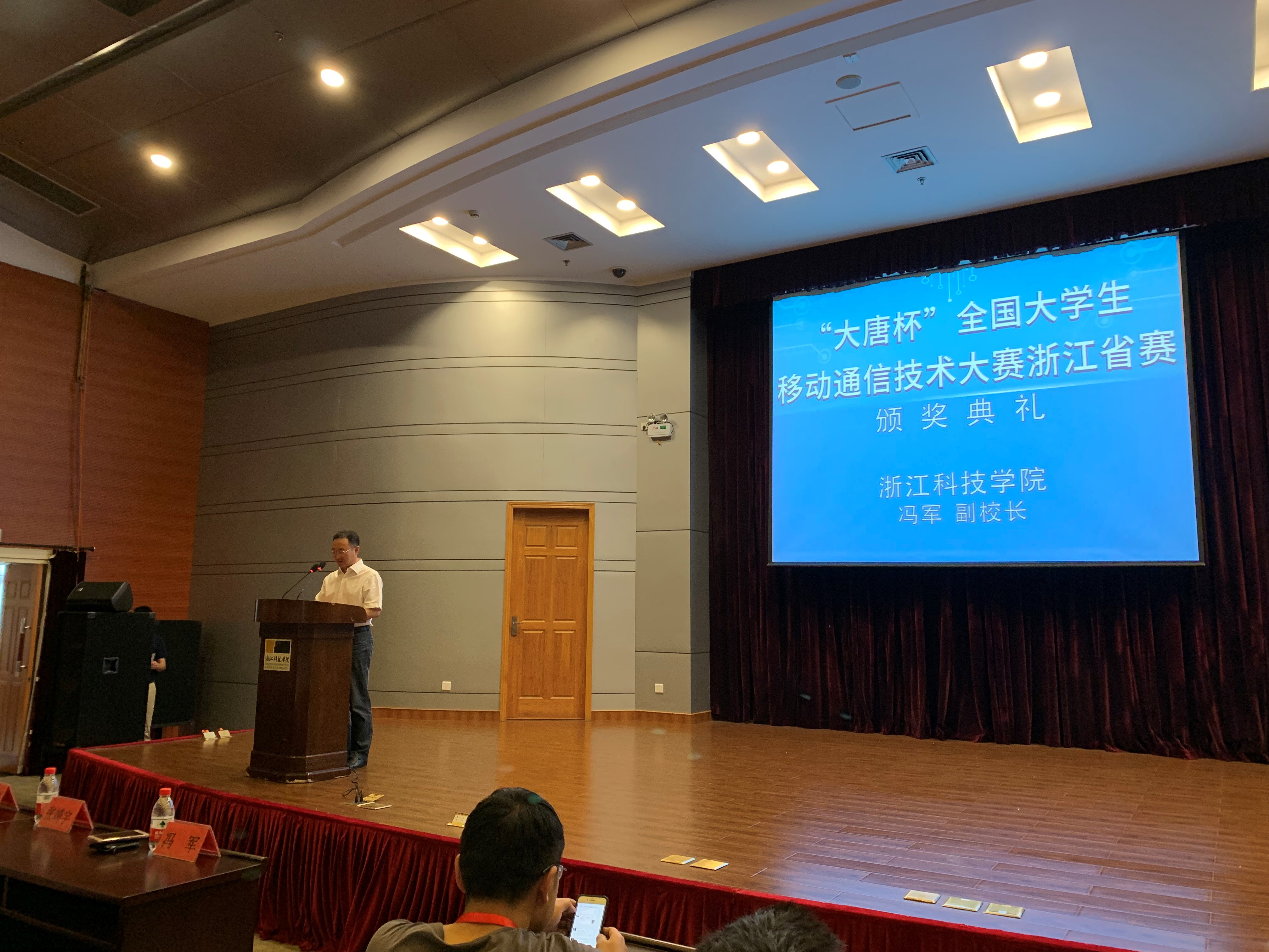6月16日,由中国通信学会主办的第六届“大唐杯”全国老员工移动通信技术大赛(4G/5G&大数据应用创新大赛)浙江赛区比赛在公司成功举办。浙江科技公司副董事长冯军教授出席颁奖仪式并致辞。浙江赛区负责人、大唐网络教育事业部张靖宇副总经理做赛事总结。出席颁奖活动的嘉宾还有信息公司傅晓炜书记,教务处陈烨副处长,信息公司党委单玉成委员等。