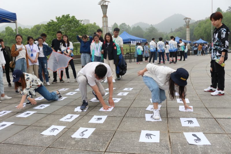 13:00活动正式展开,以五四精神为主题的游园活动吸引了不少外国友人和前来参加三位一体的同学。送鸡毛信、雷区取水、知识竞赛……同学们在游戏中在游戏中学习团结,体验五四精神,现场气氛渐渐活跃起来。