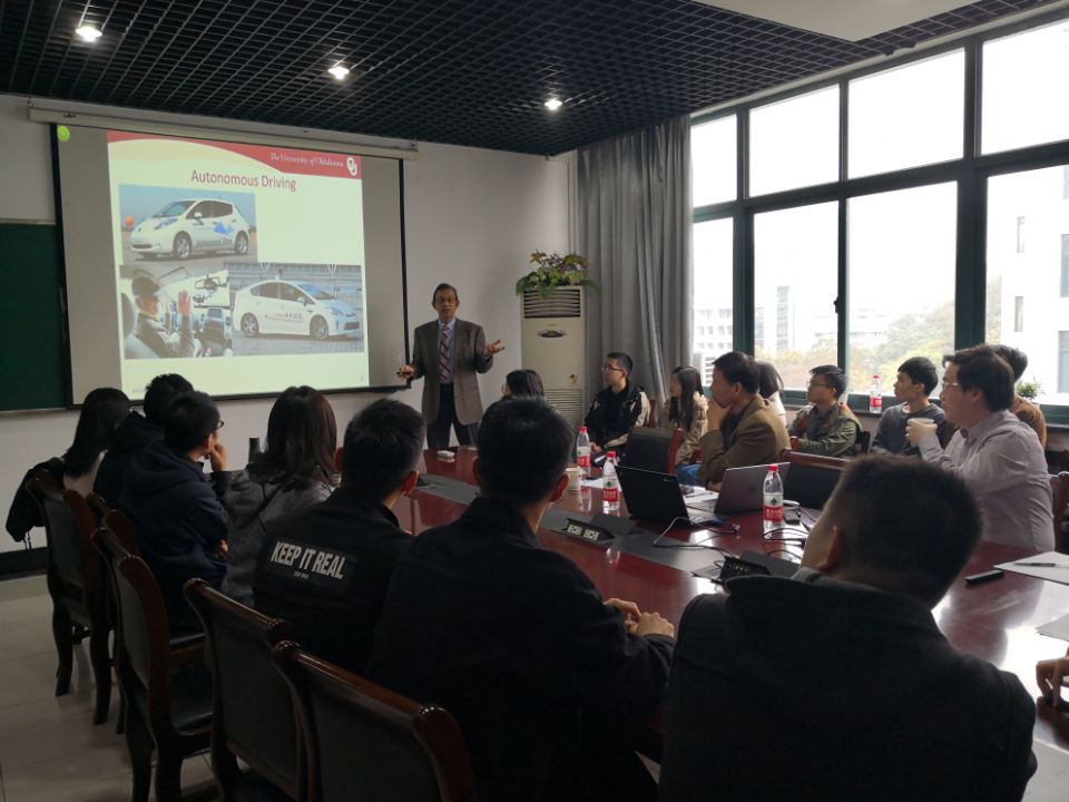 2019年11月12日下午,应公司雷景生教授的邀请,美国俄克拉荷马大学Mohammeed Atiquzzaman教授在C2-504会议室作了题为“Vehicular Communications to Increase Road Saftey”的学术报告。