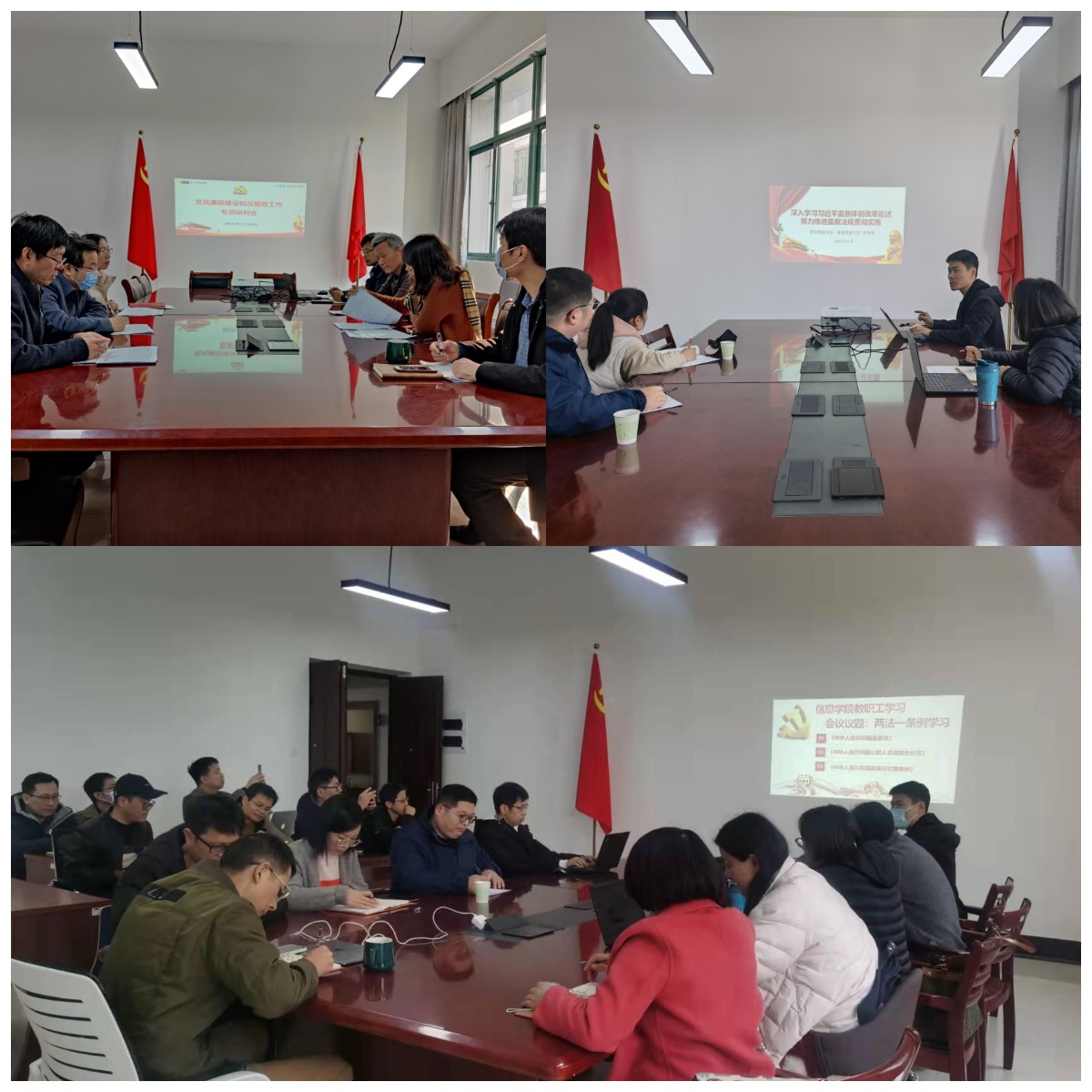 信息公司纪委在校纪委的指导下,认真做好“两法一条例”普法宣传工作方案,以公司纪委班子成员带头学,督促公司党组织开展理论学习中心组专题学习,结合教职工政治理论学习及党支部主题党日活动契机,纪委全体成员进联系支部、系部进行专题普法宣讲,组织全体教职工重点学习了省纪委省监委“两法一条例”专题讲座视频。在公司形成学习“两法一条例”普法学习新热潮,努力实现“两法一条例”学习宣传“全覆盖”工作。