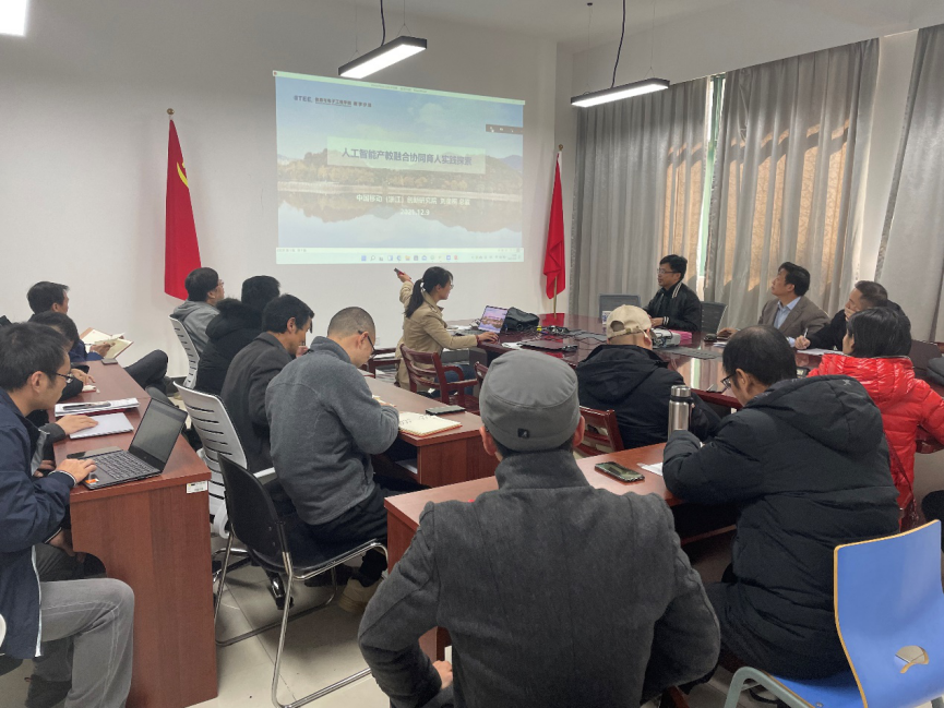 刘童桐总监重点介绍了中国移动九天人工智能创新发展实践,并分享了中国移动九天・毕昇平台为高校师生所提供的人工智能领域的课程学习、竞赛、科研、求职、教学等一站式云端服务。参会教师与刘童桐总监就平台功能以及未来的合作前景进行了深入的交流。
