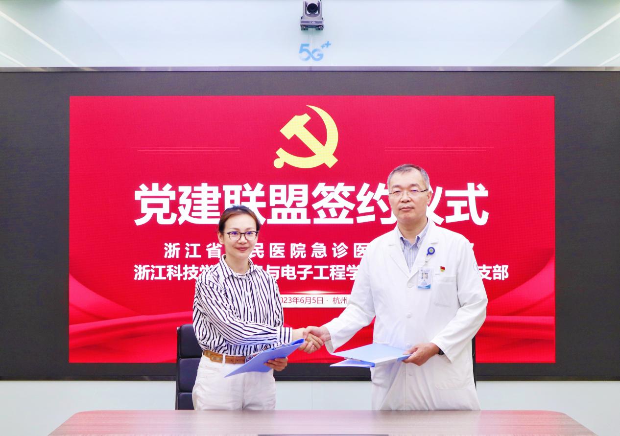 2023年6月5日,我院比特实验室党支部与浙江省人民医院急诊医学科党支部签订党建联盟。公司党委书记张蕾、比特实验室党支部书记陈芳妮、省人民医院急诊科主任蔡文伟、急诊科主任助理缪小燕出席本次签约仪式。比特实验室党支部书记陈芳妮与浙江省人民医院急诊科主任蔡文伟签署党建联盟协议,双方就业务发展、工作模式、志愿活动等合作内容达成共识。