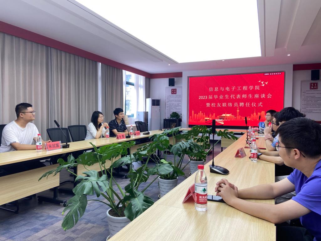 2023年6月16日上午,信息公司召开2023届毕业生代表师生座谈会暨员工联络员聘任仪式。公司党政领导成员,毕业班辅导员及2023届毕业生联络员代表参加本次座谈会。