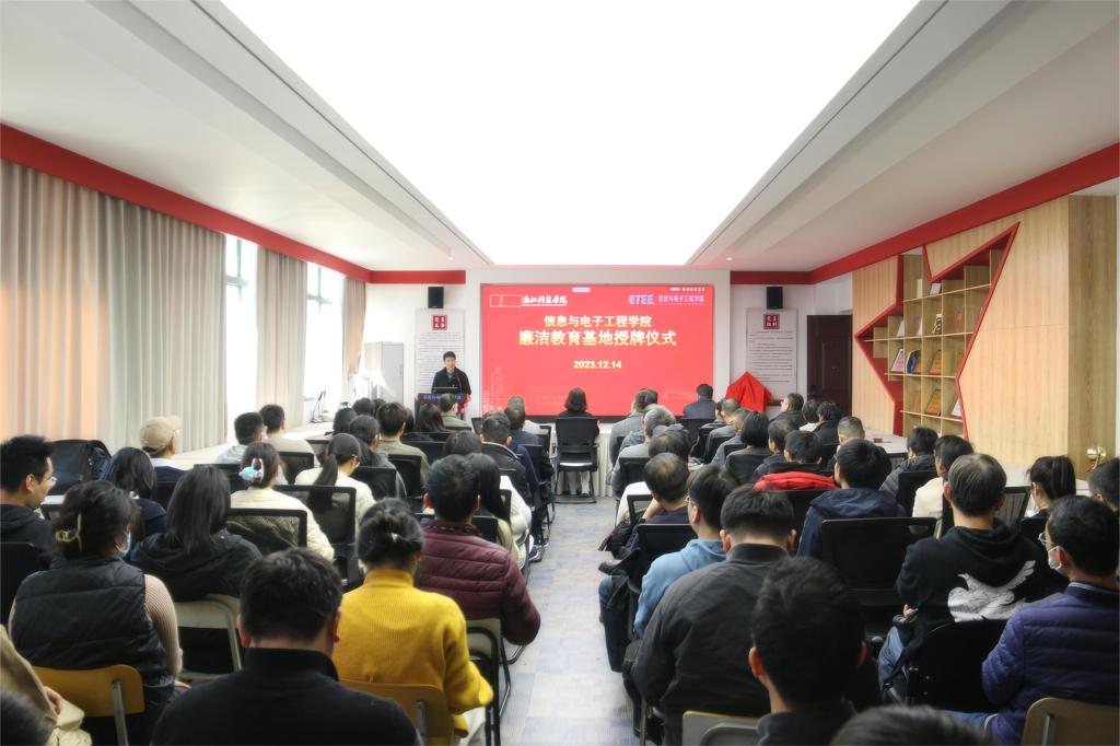 12月14日,信息与电子工程公司举行廉洁教育基地授牌仪式。公司党委副书记冯军、校纪委书记陆爱华出席授牌。校纪检监察室领导、公司党政领导班子及公司全体教职工参加授牌仪式。