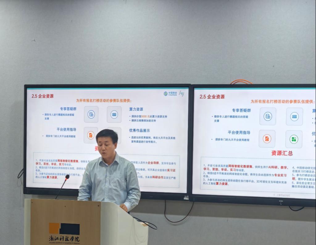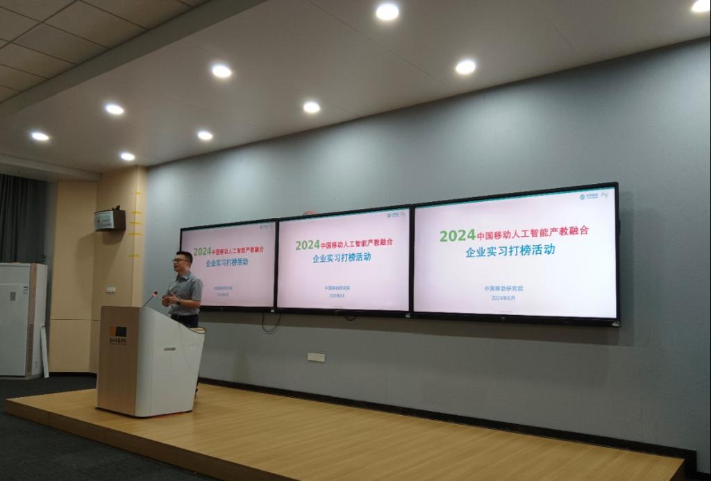 为加快推进卓越应用创新型人才培养,不断提升员工工程创新能力,2024年6月7日公司邀请合作企业中国移动(浙江)创新研究院来校召开2024中国移动人工智能产教融合企业实习打榜活动宣讲会, 100余位师生参与本次活动。