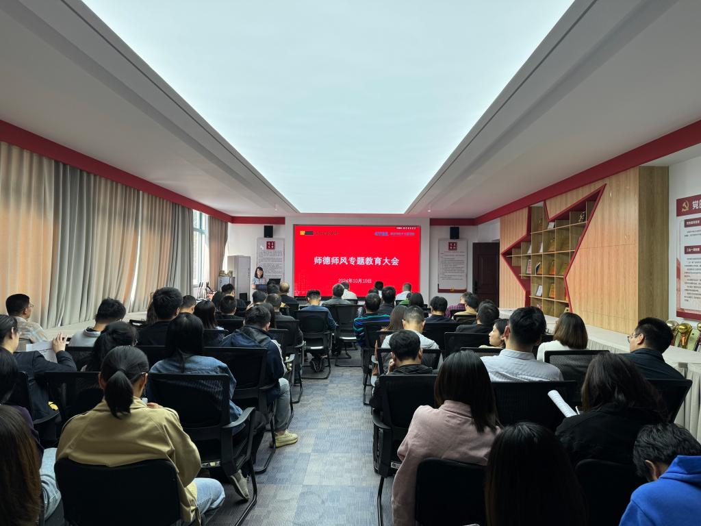 10月10日下午,公司召开全院大会,观看师德师风教育主题电影,进行师德师风警示教育。会议由公司党委书记张蕾主持。全体班子成员参加。