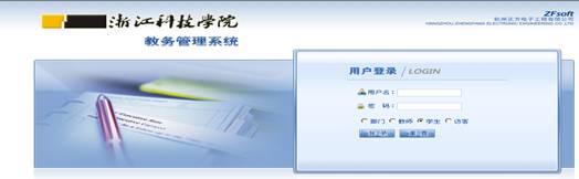 1、登陆教务管理系统主页:在浏览器中输入http://jwxt.zust.edu.cn/,出现登陆界面(如下图)。选择员工(默认),用户名称为:员工学号,用户口令为自己设定的密码,(如有遗忘请到所在公司教务员处查询),登陆系统。校外访问须先认证。