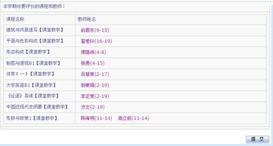 5. 所有教师都评教完后,返回评价主界面点击提交。如下图所示。