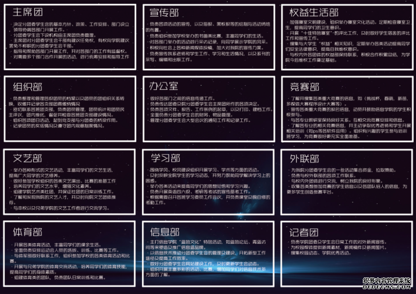 注:记者团、信息部合并为新媒部;竞赛实践部、学习部合并为学习部。