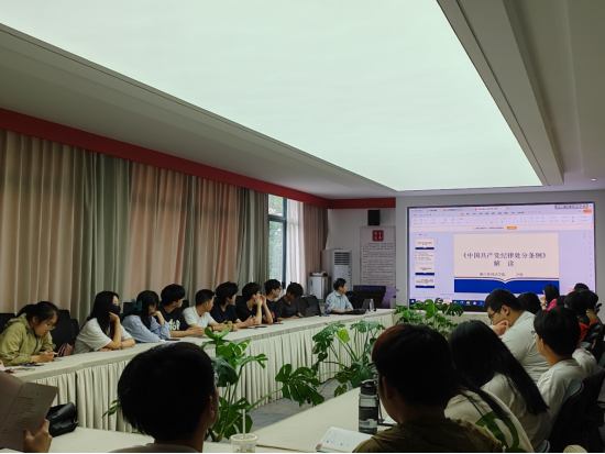 为推进党纪学习教育走深走实,6月4日,信息与电子工程公司党委举办《中国共产党纪律处分条例》(以下简称《条例》)专题学习会,邀请浙江外国语公司、浙江省党纪学习教育骨干讲师团成员尹铁教授为公司师生党员专题解读《条例》。